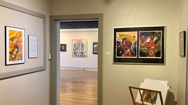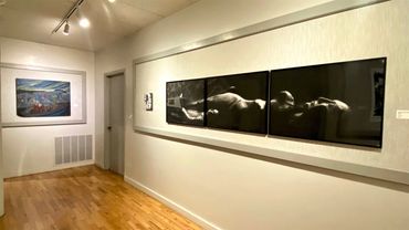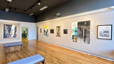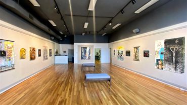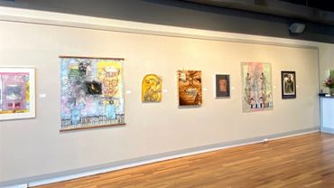 Below are gallery images, an album of individual works (installed & additional flatwork), an early video interview with Gordon, and scenes from the opening reception and Fall Art Walk.